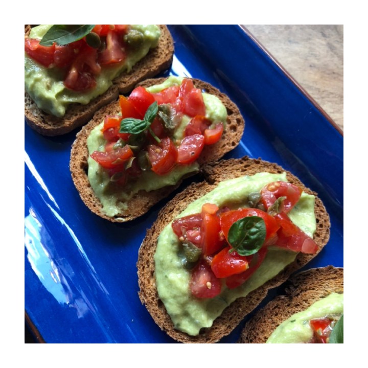 Au moment de servir, faites griller votre pain (grandes tranches ou petits morceaux selon la façon dont vous voulez le servir), et tartinez de la crème d’avocat.