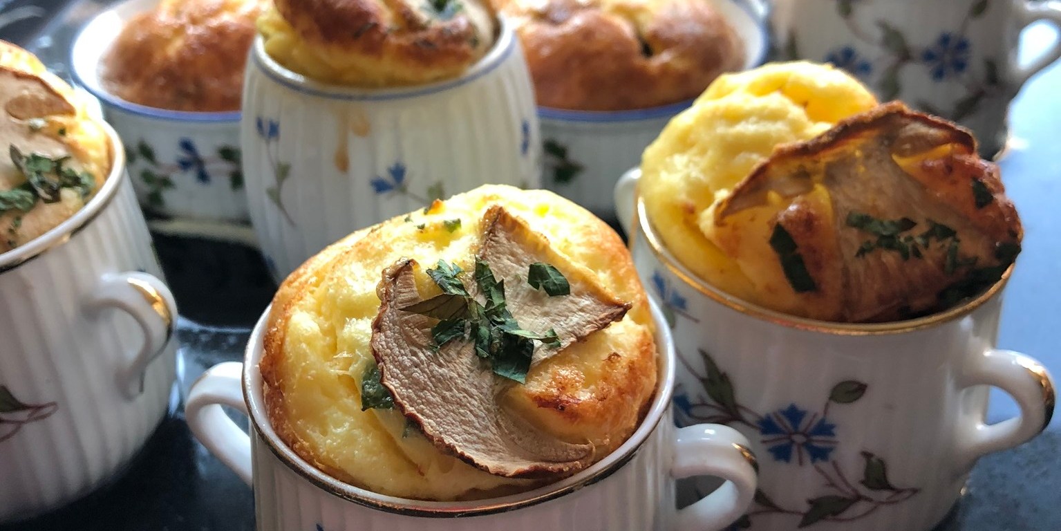 Répartir la préparation et les champignons dans des ramequins. Poser sur le dessus les tranches.