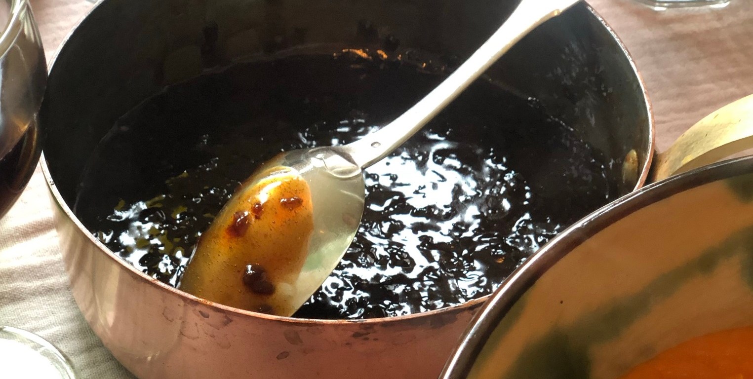 J’ai appelé cette sauce au beurre « caviar » car elle ressemble dans sa méthode de préparation au beurre blanc. J’ai remplacé le vinaigre de vin par du vinaigre balsamique. Le résultat est à la fois sucré et légèrement acide et se marie très bien avec une viande rouge, bœuf ou canard. La couleur est noire et la texture brillante. On peut dire que c’est ma spécialité depuis très longtemps. C’est une joie à la maison quand nous avons du rôti avec cette sauce, en général le dimanche.